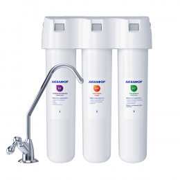Обратноосмотические фильтры используются для абсолютной защиты от накипи, т.к. полностью устраняют соли жесткости из воды.нетЧисло ступеней очисткиКартриджи последовательно очищают воду и от видимых примесей, и от растворенных. Первый картридж задерживает более крупные частицы, а каждый последующий - более мелкие. Чем больше ступеней - тем лучше фильтр очистит воду: поймает более мелкие видимые частицы ржавчины, песка и ила, успеет захватить из воды максимум растворенных примесей - хлора, нитратов, тяжелых металлов и других.3МинерализацияПроисходит после финишной очистки воды. Необходима прежде всего в фильтре обратного осмоса, поскольку такой фильтр полностью устраняет из воды все примеси, в том числе минералы. Минералы добавляются в оптимальной концентрации - для пользы и привычного вкуса воды.нетПостфильтрацияФинальный этап очистки воды: картриджи постфильтрации удаляют самые мелкие механические частицы и кондиционируют воду, придавая ей более приятный вкус.нетНакопительная емкостьОбычно нужна в фильтрах обратного осмоса. Глубокая фильтрация требует времени. Чтобы Вам не приходилось ждать, пока вода наберется в чайник или кастрюлю, почти во всех моделях используется накопительный бак для чистой воды или другая емкость. В стандартном фильтре обратного осмоса под мойку воды в баке достаточно для семьи из 5-6 человек.нетФильтрующий модуль в комплектедаОтдельный крандаДавление в водопроводе не более, атмМаксимальное давление воды на входе в систему, при котором возможна стабильная работа фильтра.6,5Ширина, смОбратите внимание на габариты фильтра, и измерьте, сколько свободного пространства в предполагаемом месте установки.26,0Глубина, смОбратите внимание на габариты фильтра, и измерьте, сколько свободного пространства в предполагаемом месте установки.9,0Защита корпуса от гидроударовдаИсходная водаЖесткая вода – вода с избытком минеральных солей. От нее появляется накипь в чайнике, известковый налет на сантехнике и разводы на посуде. Мягкая вода – та, в которой мало минеральных солей. Нет накипи в чайнике и разводов на посуде. Фильтры для мутной воды и фильтры от ржавчины, как правило, имеют несколько стадий очистки и дополнительный полипропиленовый картридж. Он задерживает механические частицы ила, песка и ржавчины и защищает картриджи более глубокой очистки.жёсткаяУстраняет мутностьМутность водопроводной воды может говорить о том, что в ней много мелких механических частиц. Важно, чтобы в фильтре был установлен дополнительные картридж механической предфильтрации (полипропиленовый) - он продлит жизнь остальным картриджам более тонкой очистки.нетУстраняет ржавчину, бурый осадокЛюбой фильтр под мойку удалит из воды крупные и мелкие частицы ржавчины. Некоторые фильтры имеют повышенный ресурс по железу: они дольше служат в такой воде, поскольку лучше подходят для удаления из воды железа и механических частиц ржавчины.нетЗащита от бактерийВсе проточные фильтры в той или иной степени защищают от бактерий. Например, добавление серебра препятствует их размножению. Это стандартная степень защиты. Если в семье есть дети, пожилые люди или аллергики, воду рекомендуется обеззараживать, то есть полностью удалять микроорганизмы. Повышенную защиту от бактерий дают фильтры с половолоконной мембраной. Это пучок тр
