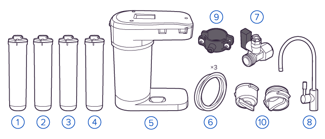Финальный этап очистки воды: картриджи постфильтрации удаляют самые мелкие механические частицы и кондиционируют воду, придавая ей более приятный вкус.