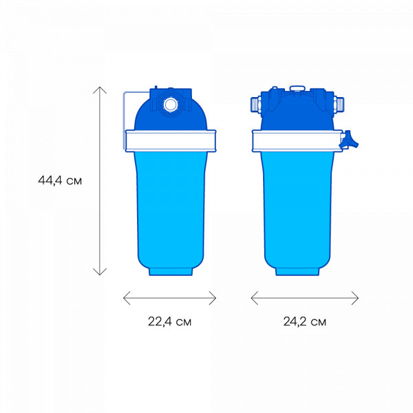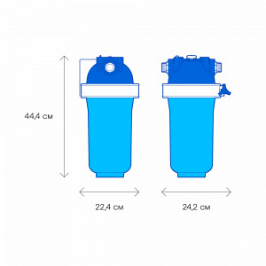 Высота, смОбратите внимание на габариты фильтра и измерьте, сколько свободного пространства в предполагаемом месте установки.44,0Ширина, смОбратите внимание на габариты фильтра, и измерьте, сколько свободного пространства в предполагаемом месте установки.27,9Глубина, смОбратите внимание на габариты фильтра, и измерьте, сколько свободного пространства в предполагаемом месте установки.22,5КомплектацияГотовый фильтр состоит из корпуса и картриджа для очистки воды. Если вы приобретаете только корпус, необходимо отдельно купить подходящий к нему картридж: это может быть картридж для механической очистки воды от ржавчины, картридж для глубокой очистки воды от хлора.только корпусВодаКартриджи и корпуса фильтров рассчитаны на определенную температуру воды. Данные технические характеристики важно учитывать, поскольку от этого зависит качество очистки и срок службы фильтра.холоднаяПрозрачный корпуснетДля горячей водыКартриджи и корпуса фильтров рассчитаны на определенную температуру воды. Данные технические характеристики важно учитывать, поскольку от этого зависит качество очистки и срок службы фильтра.нетДля холодной водыда
