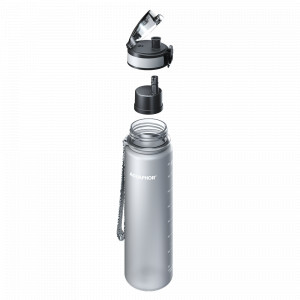 Бутылка объёмом 0.8 л — уже не просто «пить на ходу», а полноценный запас чистой воды на несколько часов прогулки, тренировки, поездки. Матовое бархатистое покрытие дарит приятные тактильные ощущения и позволяет бутылке не выскользнуть из руки, даже когда она мокрая. Встроенный клапан в крышке надёжно блокирует протекание, в каком бы положении бутылка ни находилась в рюкзаке или сумке.